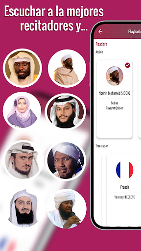 Puede elegir los recitadores que desea escuchar. Puedes elegir entre los recitadores más famosos. Mientras ellos leen con sus perfectas voces, tú puedes seguir los versos por escrito con o sin la traducción escrita del Corán.