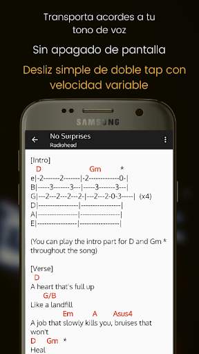 QTABs te permite tocar tus canciones favoritas de forma ágil y simple, leer los acordes sin preocuparte de que la pantalla se te apague y con un simple doble tap inicias un desfile de acordes y letra para seguir tocando sin interrupciones. Puedes aumentar el tamaño de la letra y transportar los acordes de acuerdo a tu tono de voz.