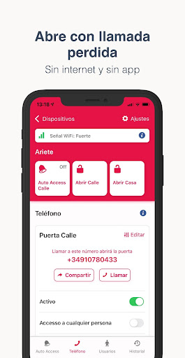 – Abre con una llamada telefónica: Autoriza los números de teléfono de tus huéspedes y deja que abran con una llamada perdida. No necesitan app ni Internet en el teléfono. Es la mejor opción para abrir el portal y la vivienda