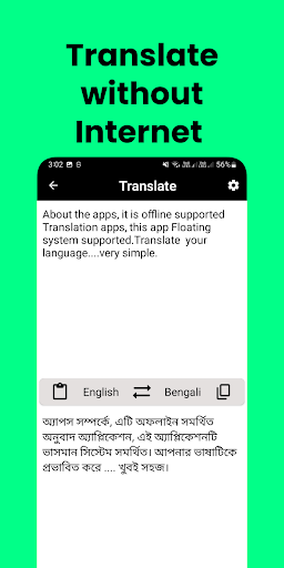 Descubra un mundo de comunicación sin límites con nuestra aplicación de traducción de idiomas fuera de línea.Disfrute de una vista de superposición única que le permite traducir y copiar texto de 50 idiomas compatibles mientras usa cualquier aplicación.Experimente la conveniencia de un sistema de texto a voz incorporado para una fácil reproducción de texto y un sistema de voz a texto para la entrada de texto sin esfuerzo.