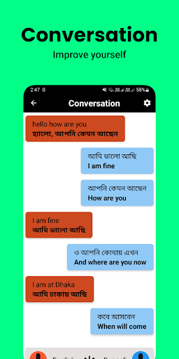 Uso de nuestra sección de conversación.Tenga conversaciones cara a cara con amigos, colegas o nuevos conocidos, todo con la ayuda de la traducción fuera de línea.¡No se requiere Internet!