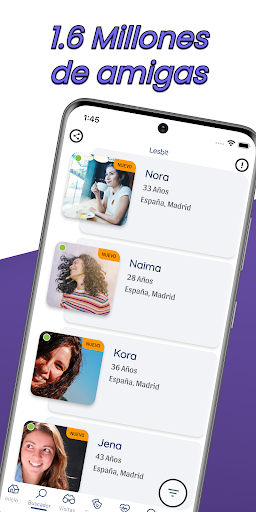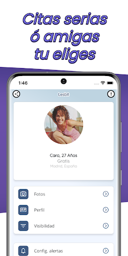 Lesbit tiene cubre tres opciones en nuestra app: Buscar pareja, conocer gente o ligar. Esto es lo primero que indicarás al rellenar tu perfil, y así encontraras y te encontraran miles de mujeres lesbianas de todo el mundo.