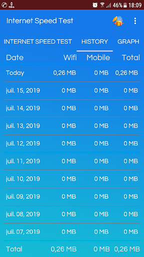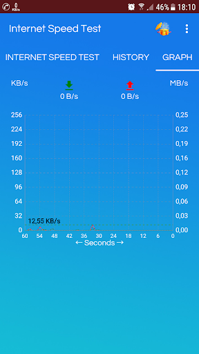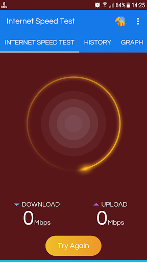 The internet speed test app measures your connection's upload speed, download speed, and latency.