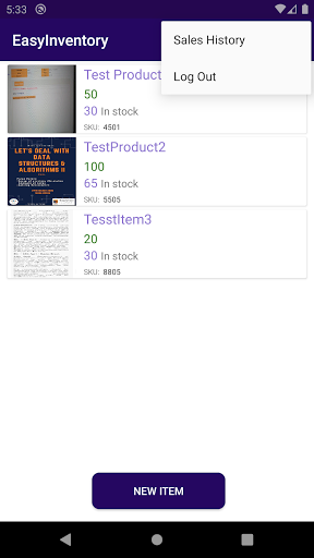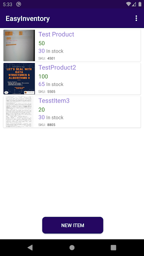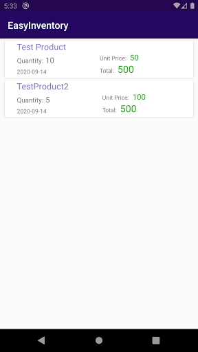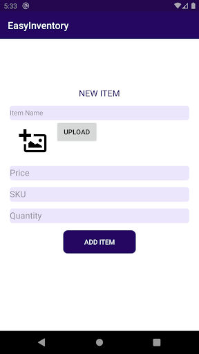 La aplicación de Android para las empresas basadas en productos para rastrear sus usuarios de inventario pueden cargar elementos, ingresando el nombre del artículo, el precio, la cantidad disponible, así como el SKU (si está presente), los usuarios también pueden agregar acciones, y vender artículos de su inventario.