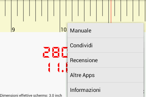 Se recomienda medir la pantalla de su dispositivo y entrar en la medición real, también es posible detectar automáticamente el tamaño de la pantalla (versión Pro).