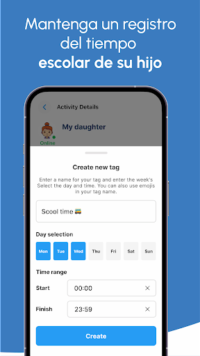 - Funcionalidad de etiquetas: identifique las horas escolares y las horas de sueño con etiquetas personalizables que permiten un mejor control sobre los períodos de uso apropiados en función de las necesidades individuales.