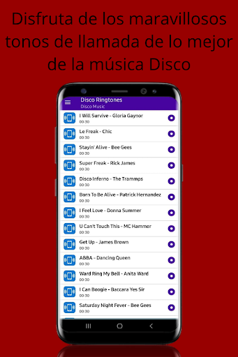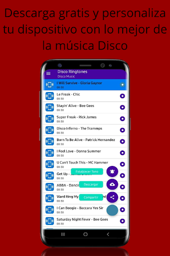 Disfruta y comparte los mejores tonos musica disco años 70 y 80 en ingles de los 90 con los sonidos e instrumentos de la banda más escuchada y más comentada en el mundo para dispositivos móviles que esta aplicación tiene para que las coloques como tonos musica disco dance Gratis.