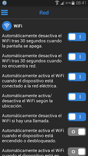 Esta aplicación no es un simple panel de control que habilita o deshabilita WiFi, Bluetooth... es un gestor de energía inteligente con características avanzadas.
