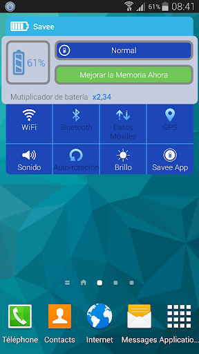 Con un “widget” en la pantalla de inicio, Savee ofrece los distintos modos de funcionamiento, poder activar o desactivar características y mostrar el ahorro de energía actual realizado. Además, con la función de gestión de memoria, Savee te permite gestionar y optimizar el teléfono para mejorar su estabilidad.