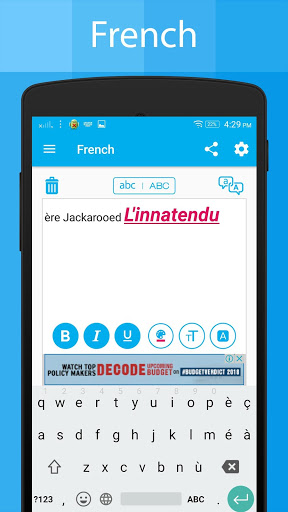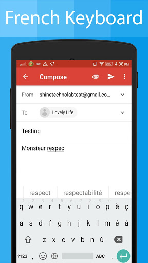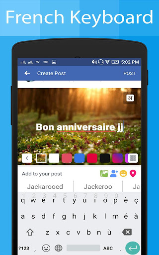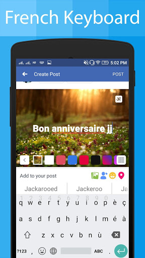 La aplicación de teclado francés le permite escribir correos electrónicos, historias, mensajes, publicaciones de medios sociales como Facebook, Twitter e Instagram publican en francés Lauguage usando el teclado francés.