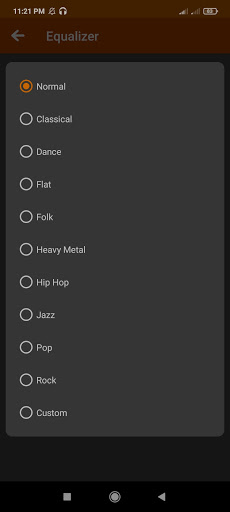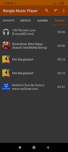 Bangla Music Player es una aplicación robusta para reproducir todos sus archivos multimedia relacionados con audio.Puede reproducir todos sus archivos de audio como canciones de MP3, podcasts, archivos grabados, etc. Dentro de esta aplicación muy suavemente.Esta aplicación incluye temporizador de reposo, ecualizador, funcionalidades de configuración.También puede ordenar la música en varias órdenes como por título, año, etc. El diseño del material permite una excelente UI para esta aplicación.