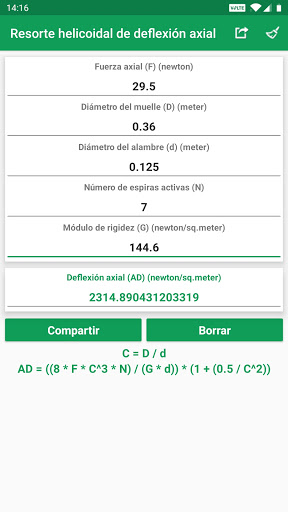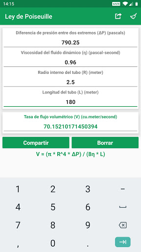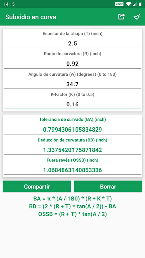 Valores calculados y los resultados se pueden compartir en redes sociales, correo, mensajes y otras aplicaciones para compartir.