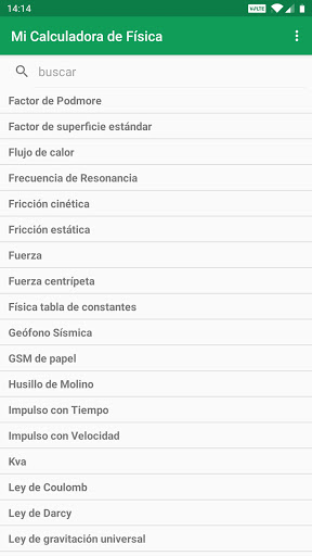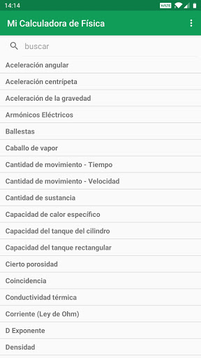 Mi Calculadora de Física contiene siguientes 134 calculadoras: