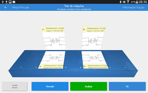 El sistema utiliza tecnología de láser lineal para dispositivos sensibles a la posición que permite realizar alineaciones de ejes altamente precisas y confiables. El TKSA 71 y esta aplicación se comunican de manera inalámbrica por Bluetooth®. La aplicación puede utilizarse también sin los componentes de hardware, ya que cuenta con un modo de demostración totalmente funcional que permite realizar todo el proceso de alineación de un tren de máquinas antes de adquirir el TKSA 71.