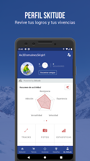 Crea tu perfil Skitude para registrar tus actividades con el tracker GPS. Encuéntrate en los rankings de la estación y trata de superar los desafíos para ganar grandes premios.