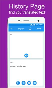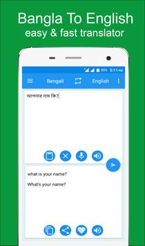 এবং বাংলা থেকে ইংরেজীতে (Bengali to English translator) যে কোন বাক্য বা শব্দ অনুবাদ করতে সহায়তা করবে। আপনি চাইলে কথা বলে তা অনুবাদ করতে পারবেন। অ্যাপটিতে সম্পূর্ন বাংলা এবং ইংরেজী ট্যান্সলেটর রয়েছে।