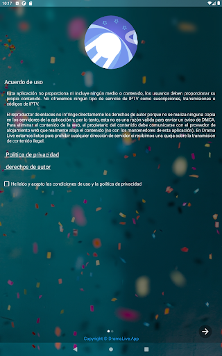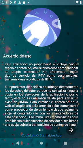La aplicación no aloja ningún archivo de video ni transmisiones en vivo en sus servidores.