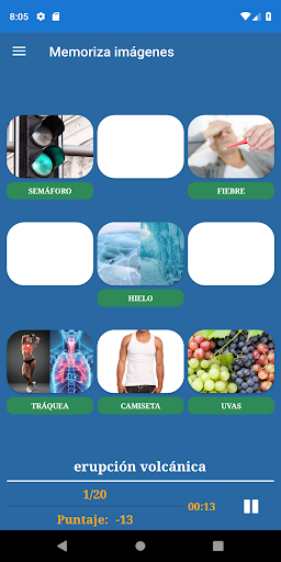 Entrena tu memoria con nosotros! Hay 8 juegos, algunos son simples, algunos son difíciles, algunos serán resueltos fácilmente por usted y otros lo desafiarán intelectualmente. Resuélvelos y sé un campeón. Estos juegos de memoria aumentarán tus habilidades mentales y harán que tu cerebro sea muy inteligente para resolver problemas y dificultades de la vida.