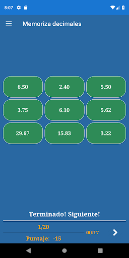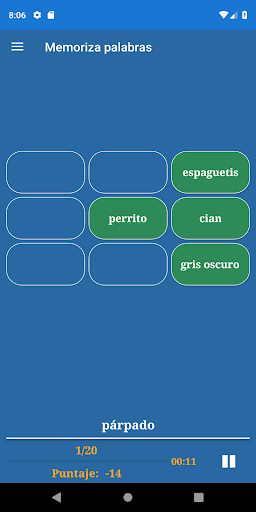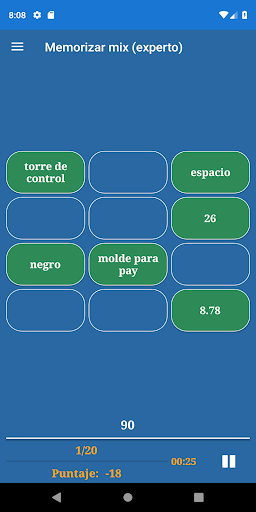 Puede ver las estadísticas eligiendo el elemento del menú en el Menú principal. La información incluye la puntuación general, el tiempo general, la precisión, el recuento de respuestas correctas e incorrectas.