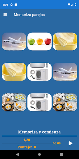 La aplicación incluye los siguientes juegos de memoria: