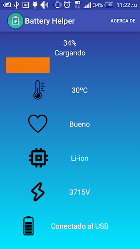 Battery Helper is una aplicación gratis y sencilla que te ayudará a monitorear el estado, condicion, tecnología, temperatura, voltaje y tipo de tu conexión de tu batería.