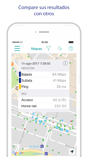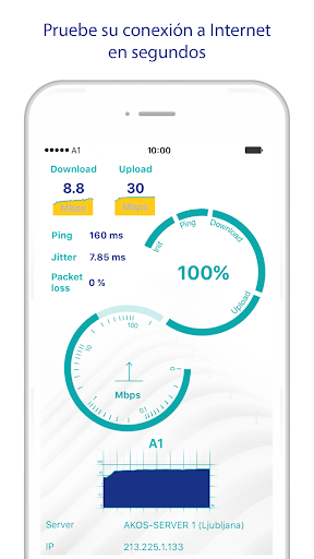 - Medición de parámetros básicos de su conexión a Internet: velocidad de descarga, velocidad de carga, ping, jitter y pérdida de paquetes