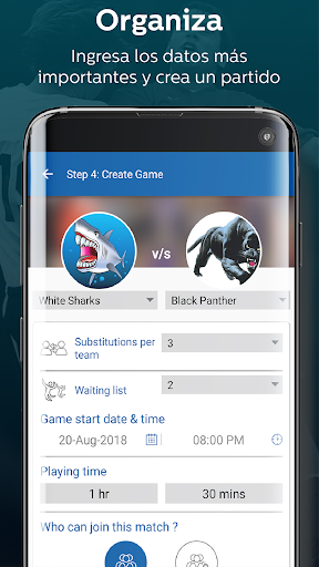 3- Ingresa la información relevante del partido