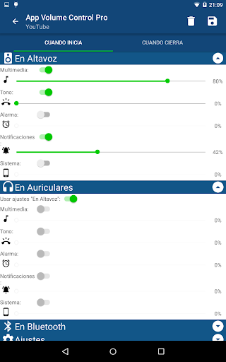 - Ajusta volúmenes diferentes cuando tengas conectados tus Auriculares o un dispositivo Bluetooth A2DP.