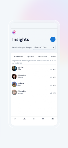 Ofrecemos la herramienta más profesional para analizar tu perfil y tu Historia en Instagram. Consigue todo lo que necesitas, incluyendo las estadísticas de tu perfil, Story Insights y los informes sobre tus Seguidores. ¿Estás curioso por conocer quién está mirando tu Historia y no te está siguiendo? ¿Te preguntas quién ha dejado de seguirte?