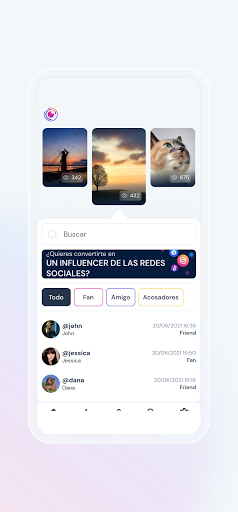 ● Búsqueda: te permite buscar usuarios de Instagram y descubrir si han visualizado tu Historia, ¡hasta una semana antes!