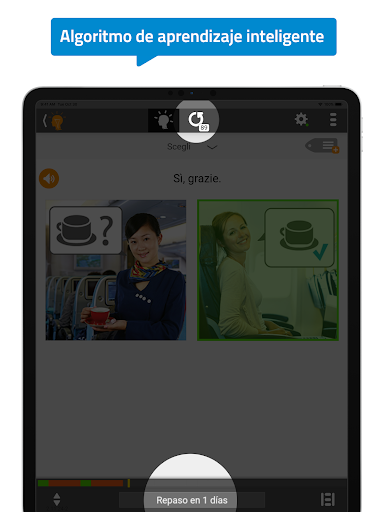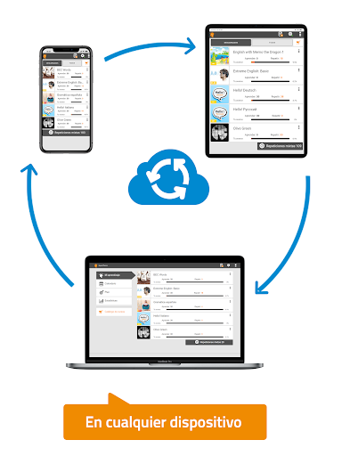 ✓en modo online y offline, en tu smartphone, tu tableta o tu ordenador: el progreso de tu aprendizaje se sincronizará automáticamente en todas las plataformas cuando tengas acceso a Internet
