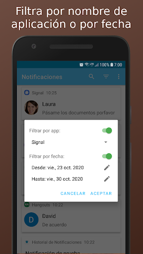 Puedes encontrar fácilmente esa notificación que estás buscando introduciendo un criterio en la barra de búsqueda. También puedes filtrar tus registros por aplicación y/o por rango de tiempo. La combinación de todos estos campos te permitirá encontrar cualquier notificación de tu registro en un instante.