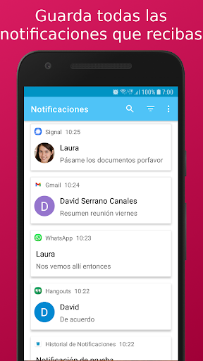 Historial de Notificaciones te muestra tus notificaciones recientes, ha sido diseñado con la simplicidad en mente para que puedas empezar a usarlo nada más descargarlo.