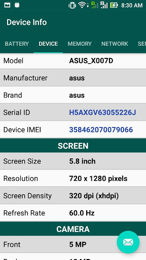 3. Información de la cámara: Cámara frontal (en mega píxel);