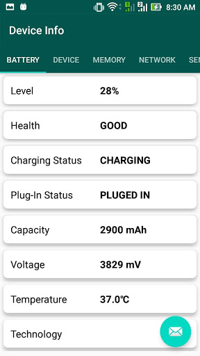 5. Información de la batería: Nivel de batería (en porcentaje);