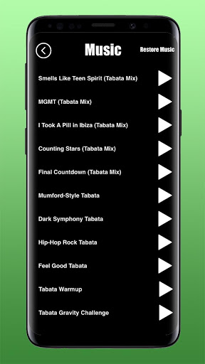 Creado por músicos, Tabata Songs ofrece específicamente música para el Protocolo de Entrenamiento Tabata de 4 minutos (20 segundos de Trabajo, 10 segundos de Descanso, x8 rondas). Cada canción acompaña al oyente durante el entrenamiento, diciéndole cuándo INICIAR y cuándo DETENERSE.