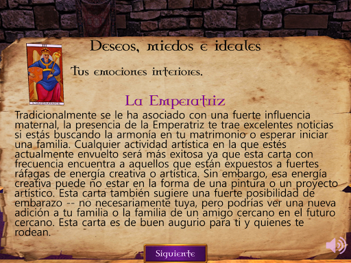 Utilice la aplicación para obtener respuestas a las preguntas que se enfrenta en su vida diaria. Utiliza todas las 78 cartas del Tarot, incluyendo 22 Arcanos Mayores y 56 Arcanos Menores.
