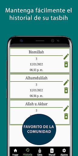 Aplicación para Tasbih (تسبیح) / Sebha (سبحة)/ Misbaha (مسبحة). En pocas palabras, es un rosario islámico, también conocido como Subha en árabe y Tespih en turco.