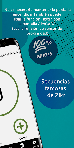 • No es necesario mantener la pantalla encendida: ¡también puede contar zikr con la pantalla apagada! Use la función 'recuento de deslizamiento de mano' (sensor de proximidad).
