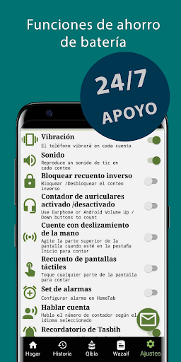p.ej. interruptores para funciones como sonido/vibración o conteo táctil. Tasbih Counter Lite es una de las aplicaciones de tesbih de mayor rango en la tienda.