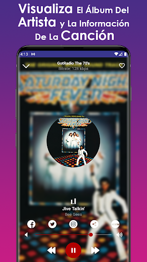 En las estaciones de radio que citamos a continuación puedes encontrar lo mejor de los años 70 y toda la música disco: 70's Classics, Classic Hits 109 - The 70s, Magic 70s Florida, 181.FM Super, 70s Disco Nights, 011.FM - Retro 70s, entre muchas mas. Esta App no funciona offline o sin internet ya que es necesario para que se reproduzcan todas las estaciones de radio correctamente.