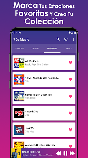 También podrás escuchar las canciones más sintonizadas de los 70s, los mejores éxitos y por supuesto toda esta musica en cualquier momento y lugar, encontraras radios en vivo y en directo resaltando todos los exitos clasicos. Encontraras radios en vivo, en línea las 24 horas del día los siete días de la semana.