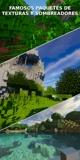 Texture Packs para Minecraft PE es una aplicación que te permite encontrar cualquier textura según tus criterios e instalarla automáticamente en el juego. La aplicación muestra solo los paquetes de texturas más populares y más recientes. Hemos seleccionado los mejores shaders y texturas con una gran cantidad de combinaciones.