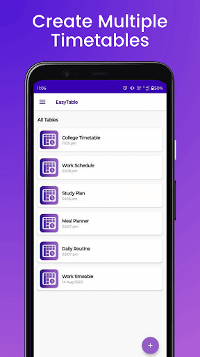 EasyTable es la aplicación más sencilla para crear horarios, diseñada para profesores, estudiantes y otros profesionales, con el fin de crear y actualizar horarios diarios.