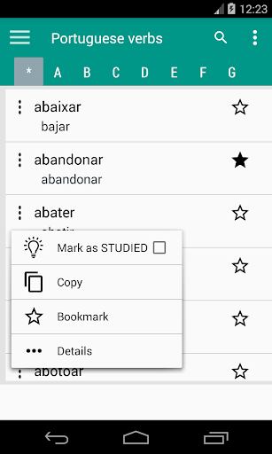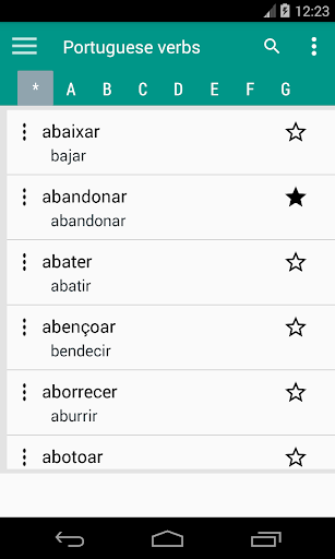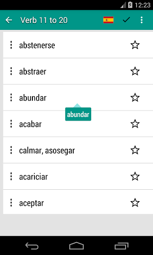 * Almacene los verbos de uso frecuente en favoritos