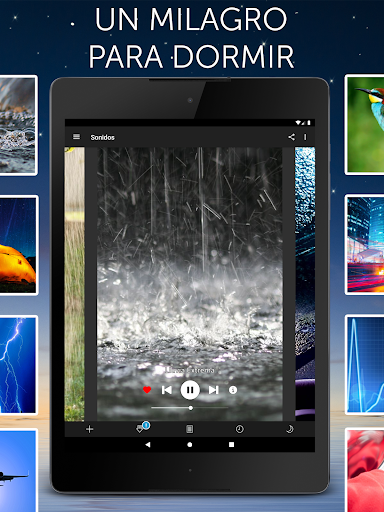 • Reproductor multimedia en pantalla con controles de volumen compatible con las funciones de deslizamiento para navegar a través de la colección de sonidos