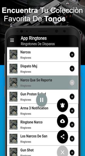 Descarga Y Disfruta la mejor aplicación donde puedes escuchar tonos de armas para celular todas los tonos de suspensos de balas seleciona tonos de pistolas para celular con ringtones de narcos de moda por lo cual puedes encontrar una gran variedad con efectos de tonos de armas de fuego sonidos de balaceras para el movil y los mejores tonos de revolver para descargar tonos de llamada gratis de disparos son especializadas para ustedes con ringtones de disparos incluye a una variedad de tonos de balas para celular, Sonidos de bombas,ametralladora, francotirador, flecha y muchos otros sonidos de pistolas para su teléfono único con estos ringtones.