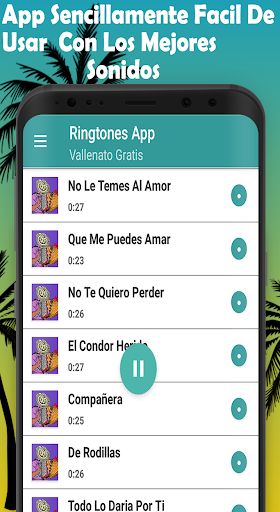 etc. Vallenatos gratis para descargar todos los tonos con los mejores vallenatos con esta App es sencillamente facil de usar, disfruta del ritmo preferido ringtones gratis vallenatos para llamadas canciones vallenatas para establecer la alarma con la música vallenata para descargar es su elección que te hacen sastifecho establecesca el sonido de mensaje con tonos para celular gratis vallenatos si te gusta las melodías de vallenatos gratis comparta ya está aplicación gratuita y selecciona tonos de música vallenata.