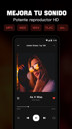 No solo es un reproductor de MP3, Music Player es compatible con todos los formatos de música y audio, incluidos MP3, MIDI, WAV, FLAC, AAC, APE, etc. Y los reproduce en alta calidad.