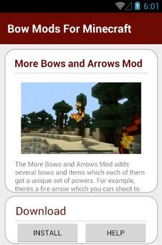 Bow Mods For Minecraft The More Bows and Arrows Mod adds several bows and items which each of them got a unique set of powers. For example, there’s a fire arrow which you can shoot to set wherever it lands on fire. There is also a teleportation bow which you can use to fire arrows to teleport from one position to another.